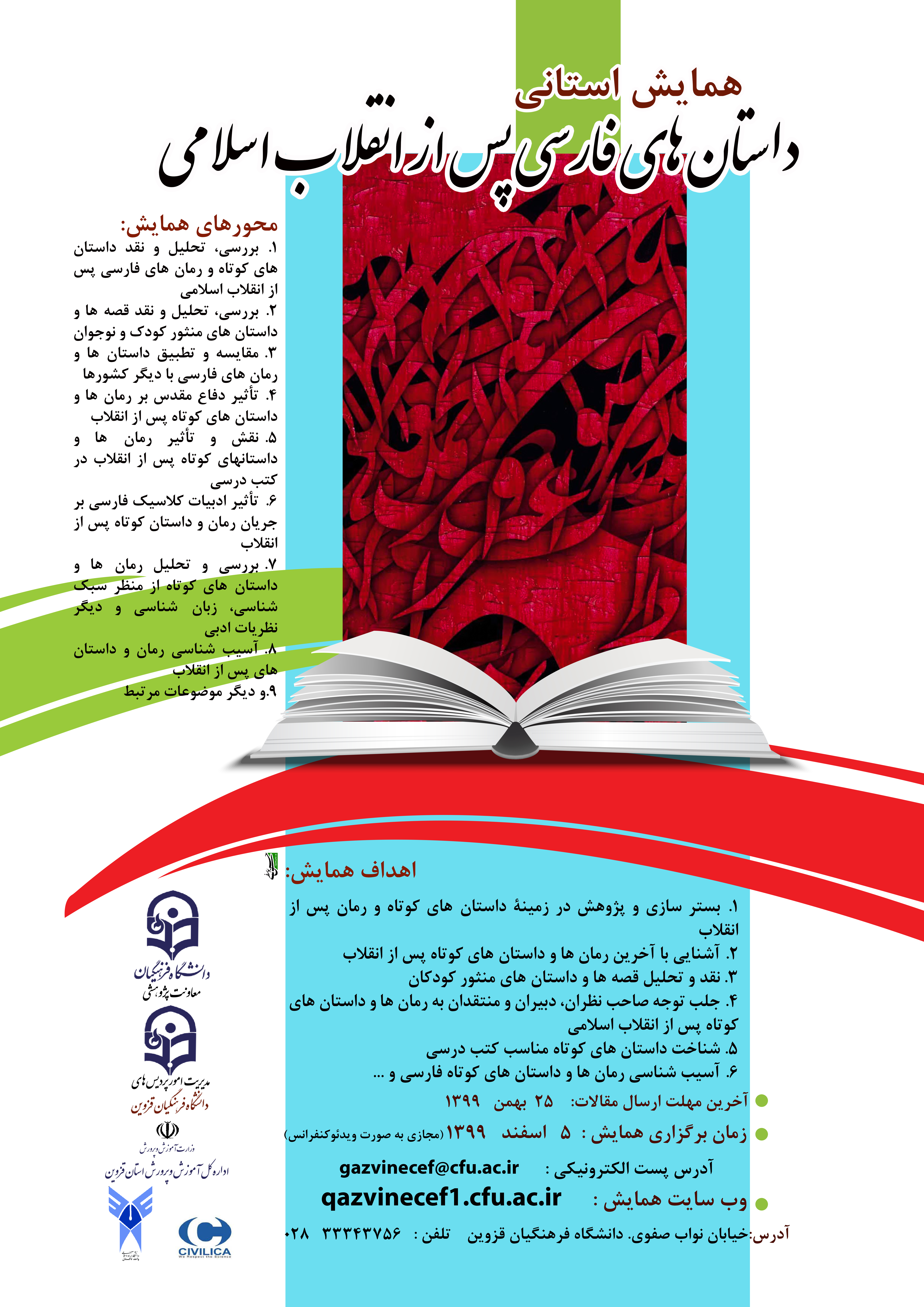 به اطلاع می رسلند همایش استانی داستان های فارسی پس از انقلاب اسلامی در تاریخ 05/12/1399 در دانشگاه فرهنگیان استان قزوین برگزار خواهد شد.