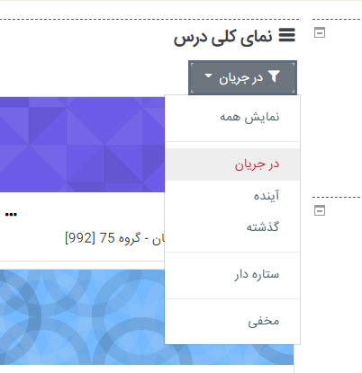 2- برای آنکه فقط دروس این ترم را مشاهده نمایید طبق شکل زیر گزینه "در جریان" را انتخاب نمایید.