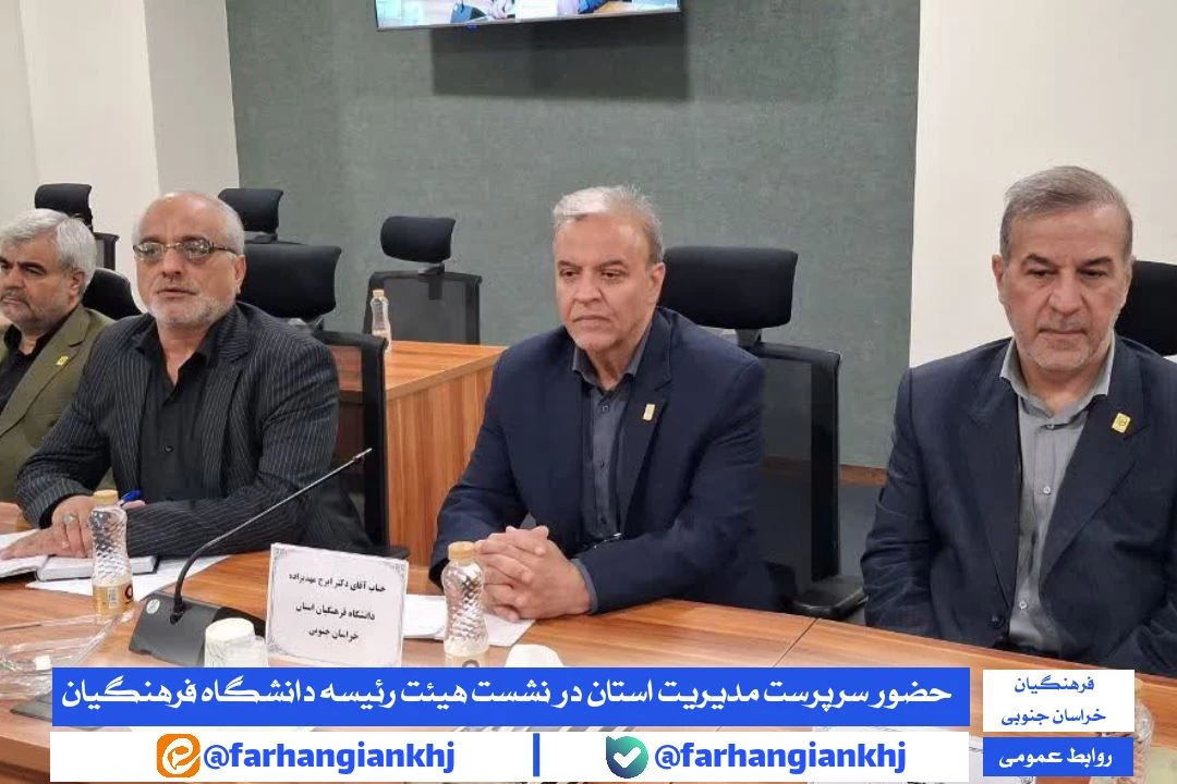 به گزارش روابط عمومی دانشگاه فرهنگیان استان خراسان جنوبی، در نشست مدیران استان با اعضای هیئت رئیسه دانشگاه فرهنگیان، دکتر مهدی‌زاده؛ سرپرست مدیریت امور پردیس های دانشگاه فرهنگیان استان خراسان جنوبی در این دوره که در اردوگاه شهید باهنر برگزار شد حضور داشته اند