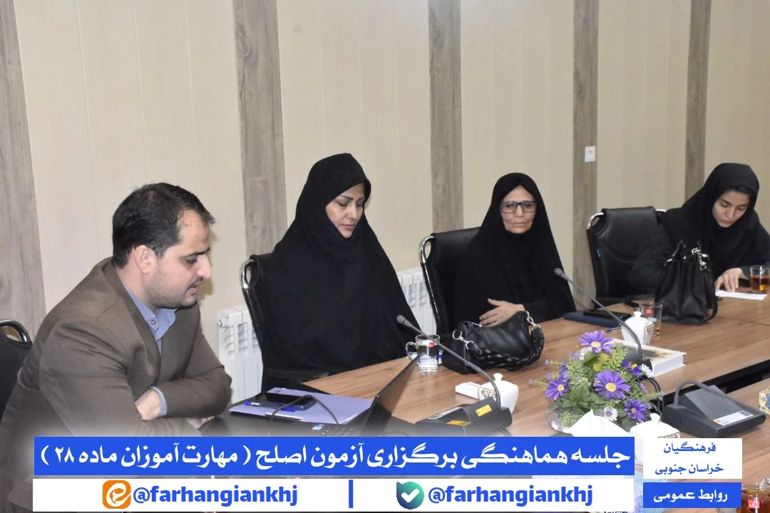 جلسه هماهنگی برگزاری آزمون اصلحِ مهارت آموزان ماده ۲۸ با حضور مهدی زاده؛ سرپرست مدیریت امور پردیس های دانشگاه فرهنگیان استان خراسان جنوبی در سالن کنفرانس مدیریت استان برگزار شد |