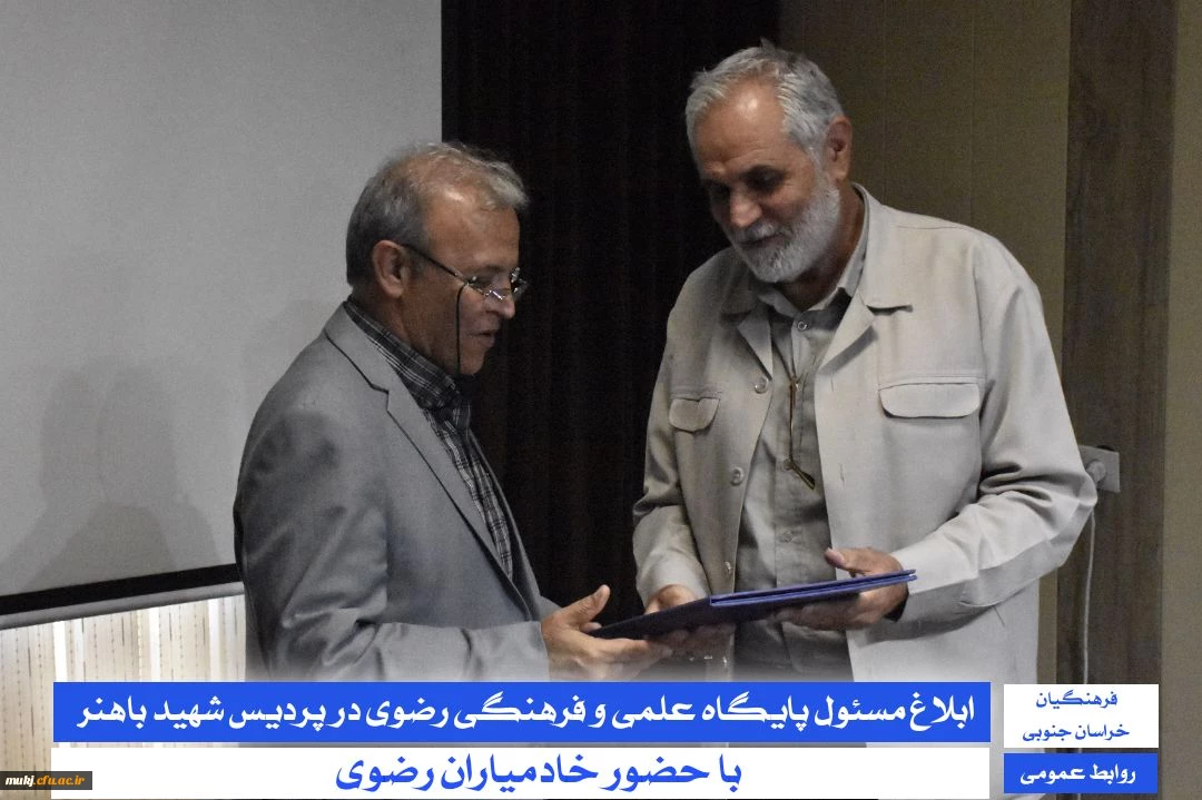 ابلاغ مسئول پایگاه علمی و فرهنگی رضوی در پردیس شهید باهنر با حضور خادمیاران رضوی 2